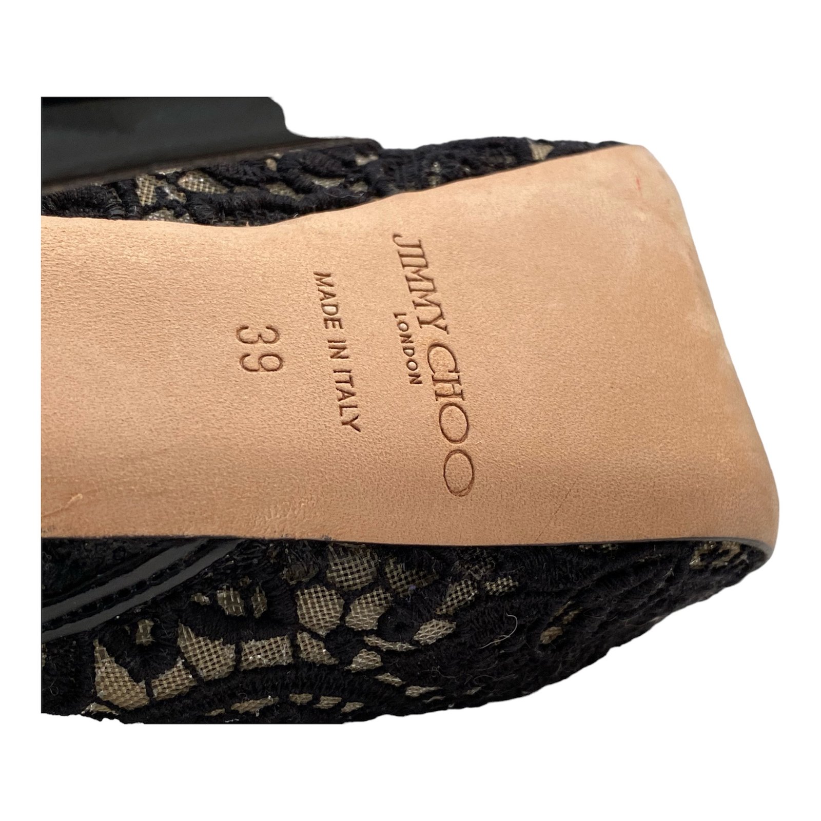 The most exquisite and rare Jimmy Choo ankle boots, very high heels with lace and black patent upper. A truly stunning boot. Excellent condition and hardly worn. Cost £1200 when new. UK Size 6, EU 39.